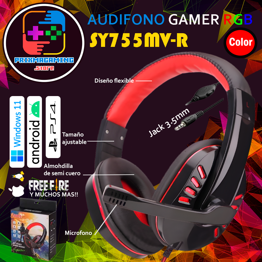 Audífono Gamer SY755MV-R con micrófono, tiene jack 3.5mm, color negro con rojo, luz led rojo, para PC, laptop, Windows, android, smartphone, consola ps4 y mucho mas! Delivery Gratis hasta el central madeirense, Prado, Luxor, C.C Guacara Plaza, Pradera, Apartamentos Malave. C.C Piedra Pintada, Hospital de Guacara y otros puntos no mayor a 4km si no son los indicados, de 4km a 8km $2, Whatsapp 0/4/1/2/0/6/0/5/6/8/7, síguenos en Instagram como @prixmagaming.store Somos tienda física.